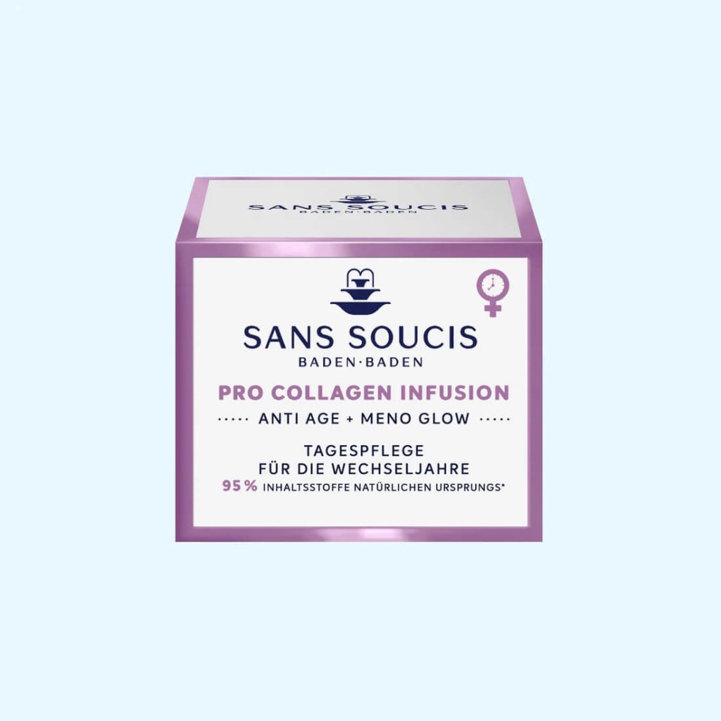 Vysoko kvalitný denný krém Pro Collagen Infusion s peptidmi, ceramidmi a rastlinným kolagénom bol špeciálne vyvinutý, aby hormonálne stresovanej pokožke vrátil tonus a pružnosť. Denný krém poskytuje dlhotrvajúcu hydratáciu a posilňuje odolnosť pokožky voči vonkajším vplyvom. Jeho jemná textúra sa rýchlo vstrebáva a zanecháva pokožku hladkú. Pre optimálnu starostlivosť o pokožku v menopauze.